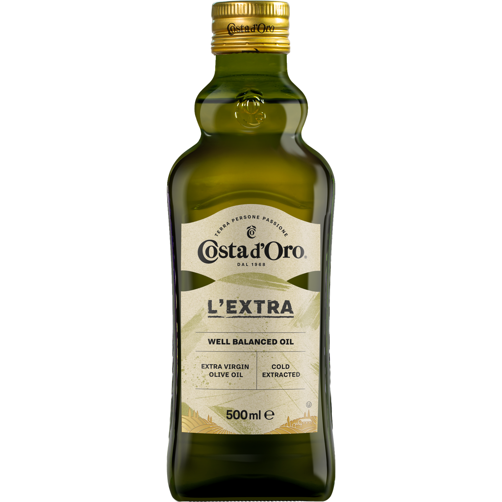 El Aceite de Oliva Extra Virgen Costa d’Oro L’Extra es un aceite de alta calidad, elaborado a partir de aceitunas seleccionadas mediante procesos mecánicos, prensado en frio, lo que garantiza pureza, sabor y excelencia.