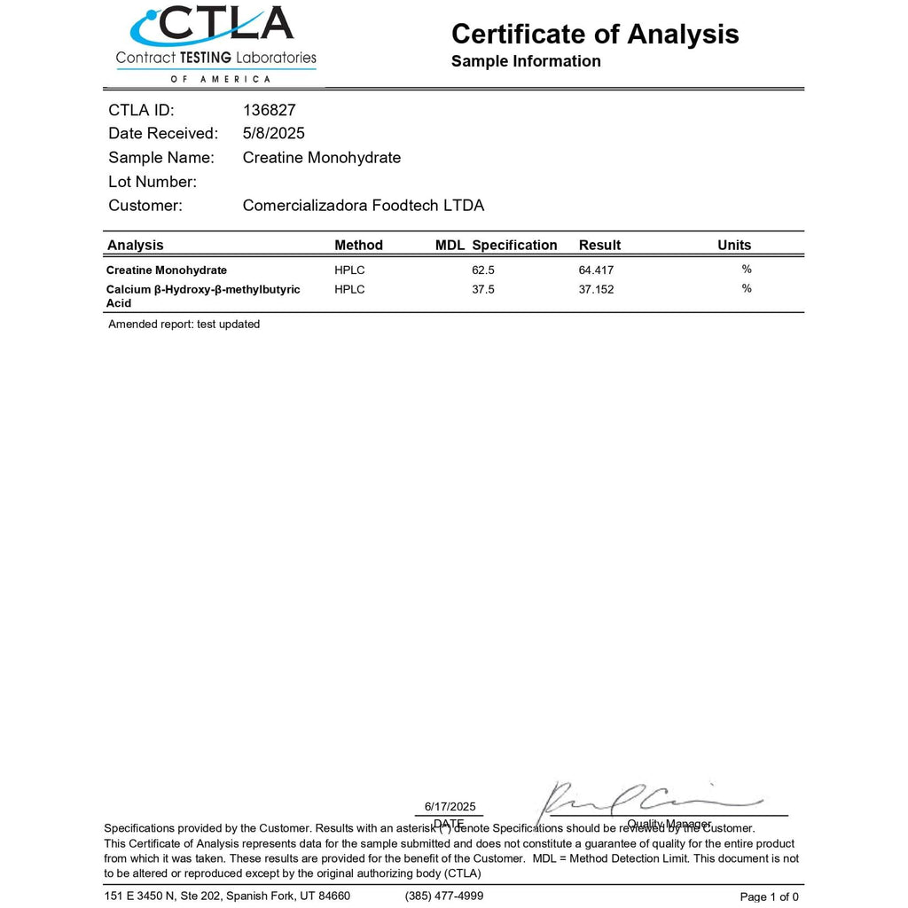 Fórmula pura y sin sabor con Creatina Monohidratada y HMB para máxima fuerza, crecimiento muscular y recuperación.