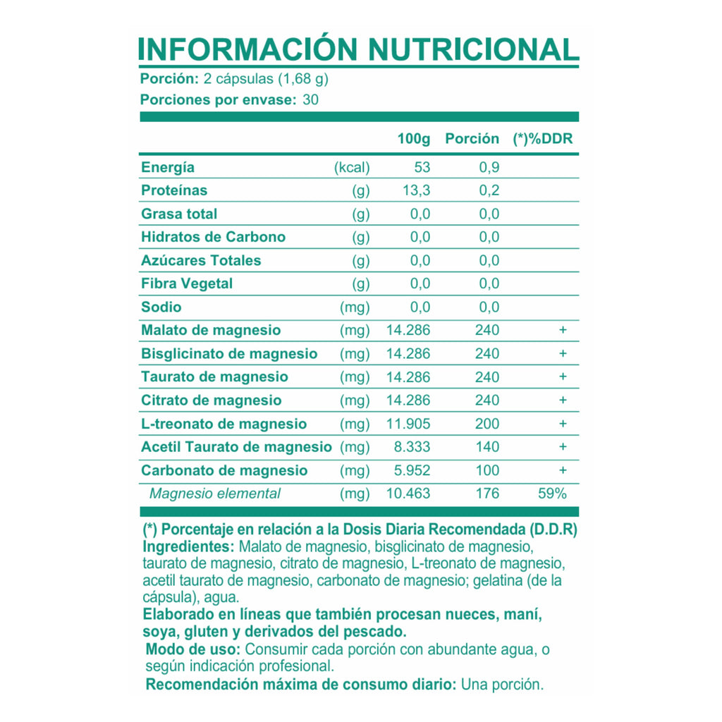 Magnesio elemental total: 176 mg