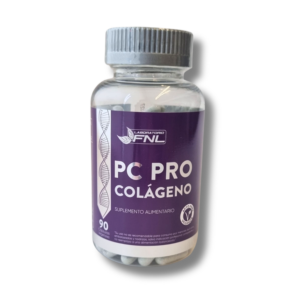 PC Pro Colágeno es un suplemento vegano diseñado para estimular la producción natural de colágeno en el cuerpo. A diferencia del colágeno animal, esta fórmula trabaja como precursora, entregando al organismo los aminoácidos y nutrientes esenciales para que forme su propio colágeno de manera eficiente.