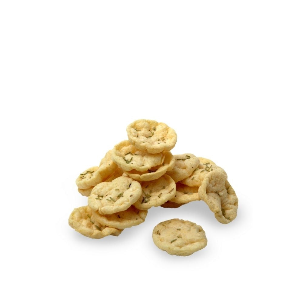 Snack aireado y crujiente en base a papa, saborizado con romero.