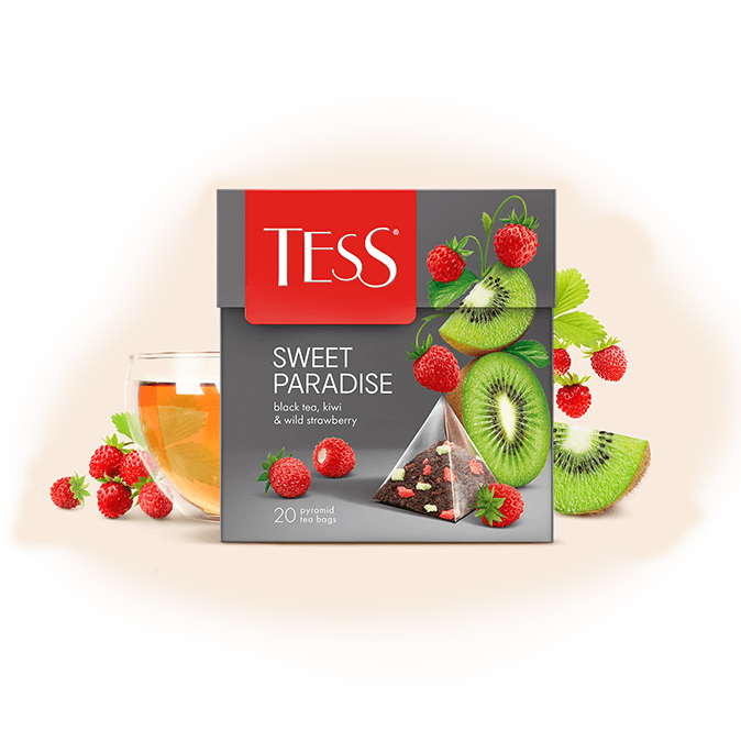 Alegre y divertido, como el estado de ánimo veraniego. El té negro Sweet Paradise con dulces fresas y jugoso kiwi te brinda un emocionante carnaval de sabores.