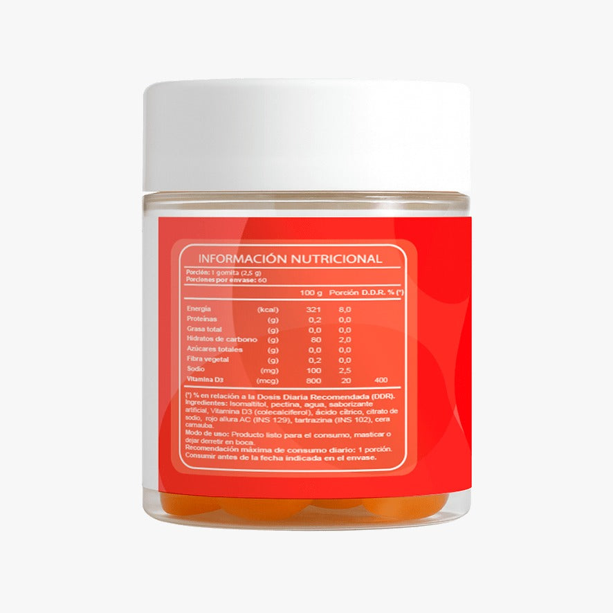 ✔ 800 UI por gomita (dosis práctica diaria)
