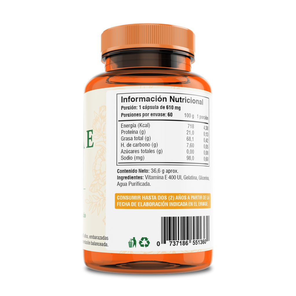 Vitamina E 400 UI – 60 Cápsulas Softgel (2 meses) | Fuente Vital