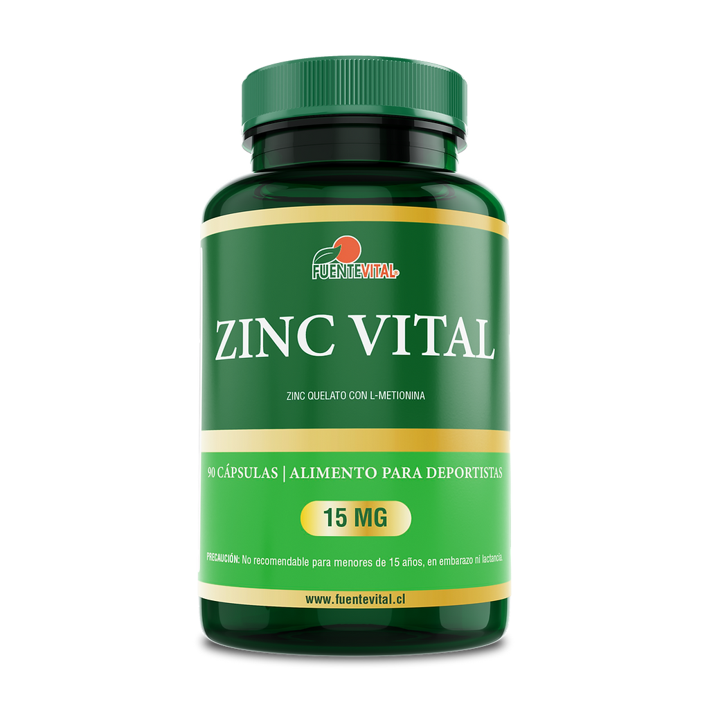 Zinc Vital 15mg (Zinc Quelato Bisglicinato + L-Metionina) 90 Cápsulas Vegetales (3 meses) – Fuente Vital
